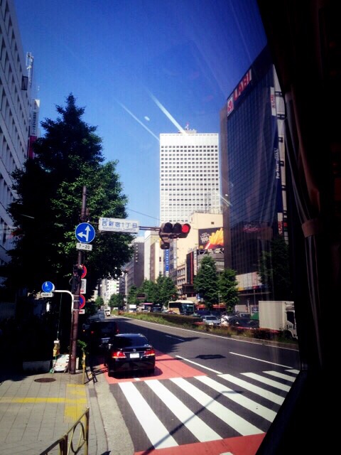 東京も朝陽が眩しい。よく晴れた日ですね、