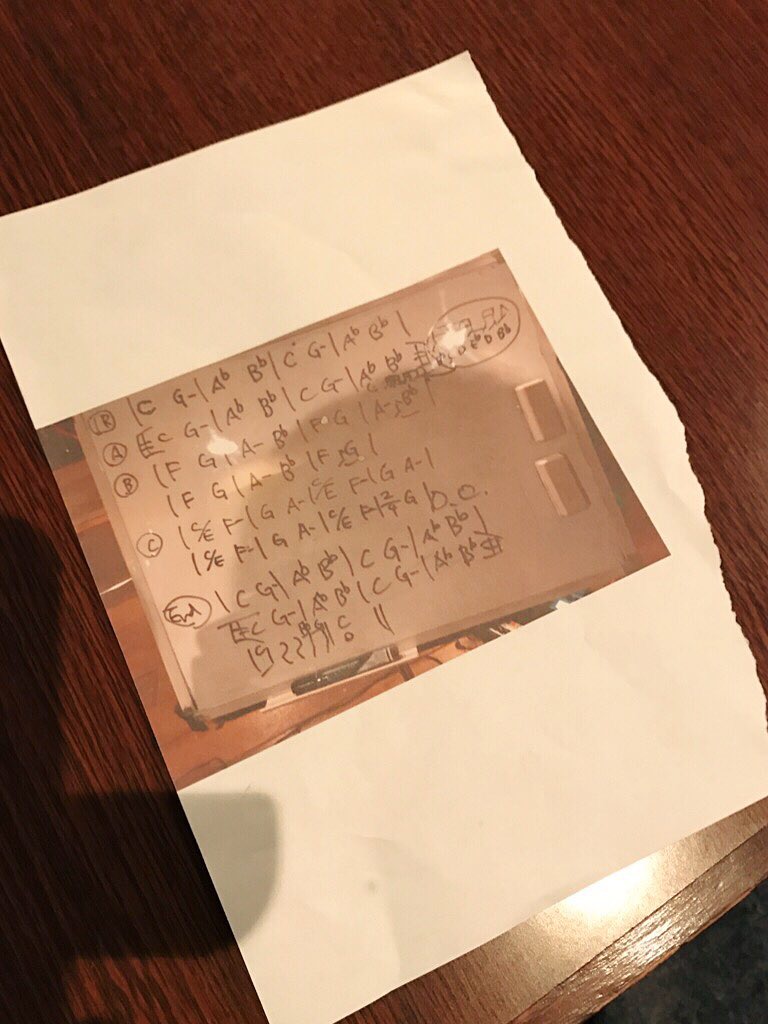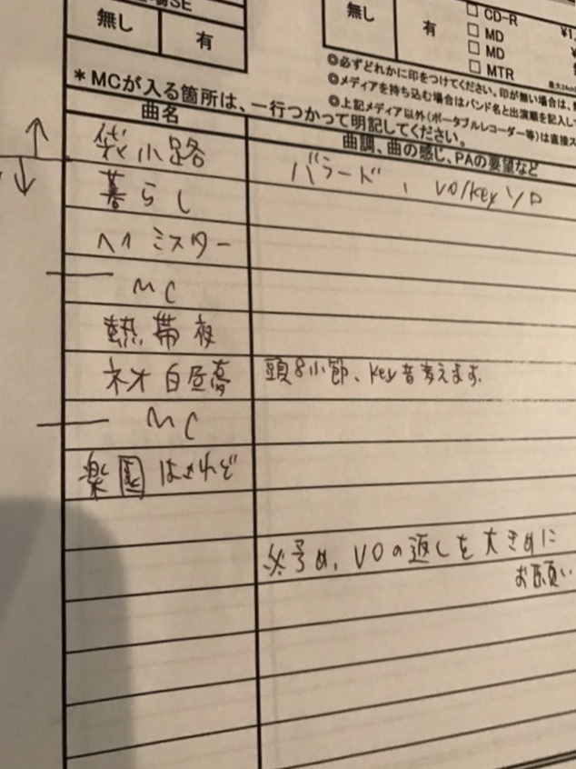 リハ時にその場でつぼがホワイトボードに書いたのを、そのまま印刷してくれた。